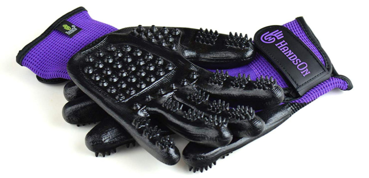 My cat, Baby, hates to be brushed----but loves to be petted--constantly. That glove below just might be the answer to my prayers--less hair being shed all over the apartment!