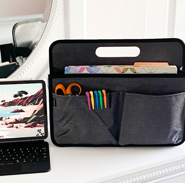 One of her favorite products for organization and for storing yarn and hooks for her crochet projects is the Deluxe Double Duty Caddy. It is also great for a mobile office because it is so easy to pick up and “go!” Would you like to see one of hers? Here is a short video for you to check out!