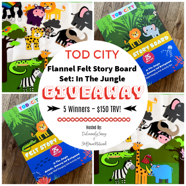 5 Lucky Winners will win a Tod City Flannel Felt Story Board Set: In The Jungle (TRV $150!)