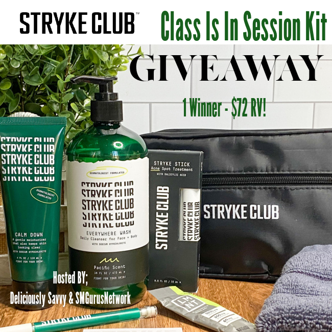 1 Lucky Winner will win a Class In In Session Mens Skincare Kit from Stryke Club! $72 RV.